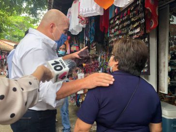 Posteriormente, el jefe del Ejecutivo estatal realizó un recorrido por el Mercado Municipal de Artesanías que también resultó afectado por el desbordamiento del Río Cuale. Ahí, el Gobernador se reunió con los locatarios para escuchar sus demandas y prometió ayudarles económicamente a recuperar sus mercancías y a continuar lo antes posible su actividad comercial, una vez que se termine el dictamen que se realiza en el mercado para descartar daños estructurales.