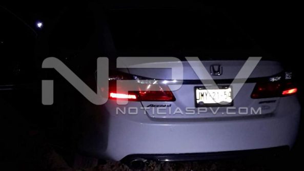 A 100 metros rumbo al poblado de Tecuala, dentro de una tierra de cultivo, encontraron un vehículo abandonado este de la marca Honda, Tipo Accord, de color blanco, con placas de circulación JMY- 21-54 del Estado de Jalisco, mismo que estaba chocado de su parte frontal delantera.
