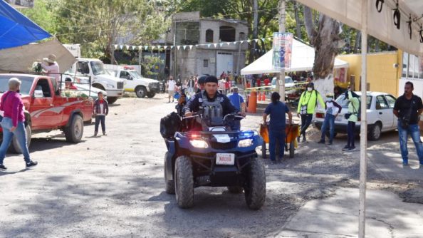 Asimismo, elementos de seguridad llevan a cabo recorridos de vigilancia y prevención por pie tierra, motopatrullas y aéreos por parte de la Unidad de Drones de la Policía Estatal a lo largo y ancho del lugar. De igual forma, se realiza el Operativo Carrusel por la avenida Insurgentes, la autopista Tepic – Mazatlán, el libramiento carretero y retornando en bulevar Tepic – Xalisco y por las diferentes rutas de acceso a las colonias aledañas a dicho poblado.