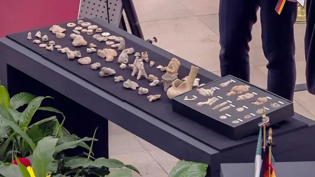 De acuerdo con información de la embajada de México se trata de figurillas de barro algunas de ellas objetos antropomorfos, zoomorfos, orejeras, una vasija y su soporte pertenecientes al período clásico y posclásico mesoamericano (300-1500 d.C).