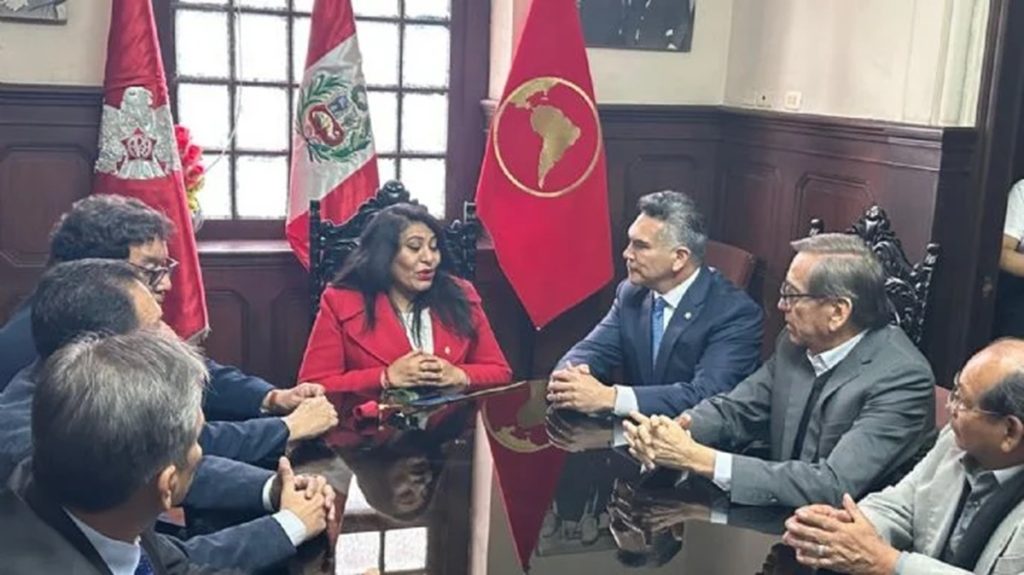 El senador y líder nacional del PRI visitó a la presidenta del país andino, en cuyo congreso avanza una resolución contra la mandataria mexicana
