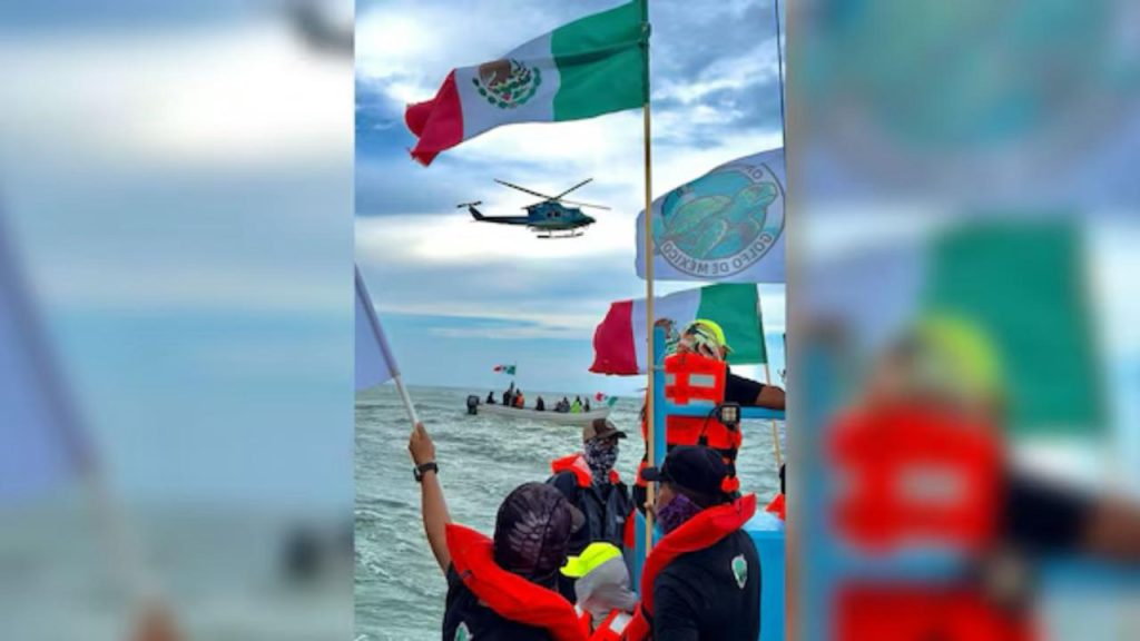 En un video adjunto a su mensaje, se observa la cercanía de un helicóptero a las lanchas ocupadas por ambientalistas, quienes calificaron esta acción como «una agresión directa» a las embarcaciones y tripulantes que participaban en una actividad pacífica y autorizada, acompañados de personal de la Semarnat y Profepa.