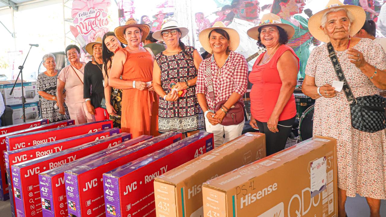 Además, se entregaron más de mil regalos entre las asistentes, incluyendo más de 100 pantallas, 50 colchones, 20 lavadoras, 10 refrigeradores, 10 estufas, 10 aires acondicionados, 5 salas, 5 comedores y 3 recámaras completamente equipadas con todos los blancos. También se repartieron obsequios especiales, como pantallas y ramos de rosas, a través de dinámicas en redes sociales.