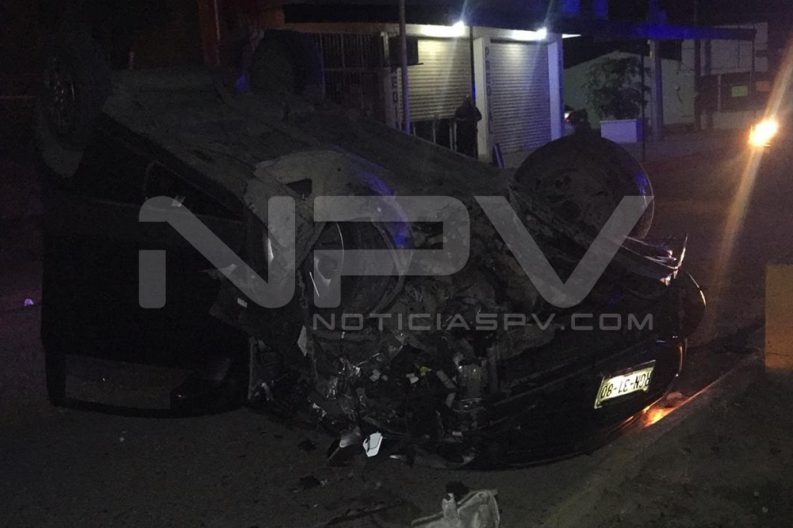 Vecino de Alta Vela volcó en el vehículo que conducía al parecer a exeso de velocidad sobre el Boulevard Riviera Nayarit, quien solo resultó con lesiones que no ponen en riesgo su vida, aunque sí hubo cuantiosos daños materiales.