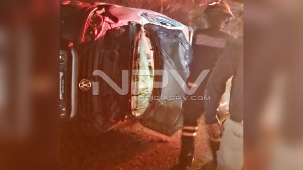 Un auto Cross Fox quedó volcado en la carretera y paramédicos atendieron a dos personas *Guardia Nacional tomó conocimiento de este accidente