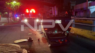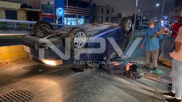 Según los reportes, indican que el vehículo circulaba con sentido hacia el oriente, cuando al llegar al paso a desnivel, se subió a la barrera de contención y terminó por volcar la unidad.
