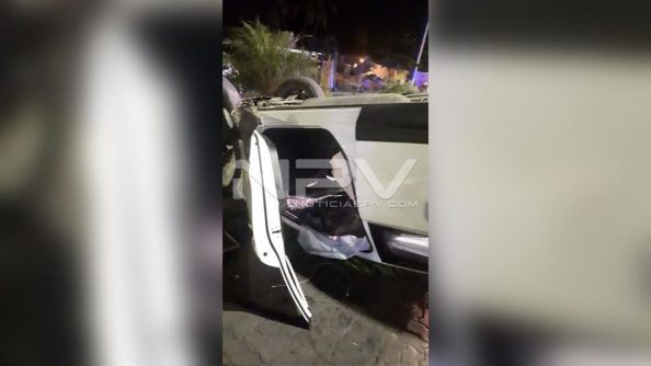 La madrugada de este domingo, se registró fuerte volcadura frente al negocio denominado Strana, sobre avenida de ingreso, Francisco Medina Ascencio.
