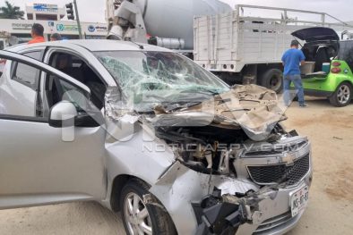 Cuantiosos daños materiales fue el saldo que arrojó un choque entre dos vehículos en el crucero de EL Tondoroque, donde un auto compacto se impactó en la parte trasera de una camioneta de carga, resultando milagrosamente ilesa la mujer que lo conducía.