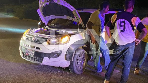 Por el lugar pasaban dos elementos de la Policía Municipal, en una patrulla, quienes al ver el accidente se acercaron a auxiliar a las personas que viajaban en un auto Fiat, de color blanco, quienes manifestaron que fue un vehículo el que se impactó contra ellos y luego se dio a la fuga con rumbo desconocido, sin dar características.
