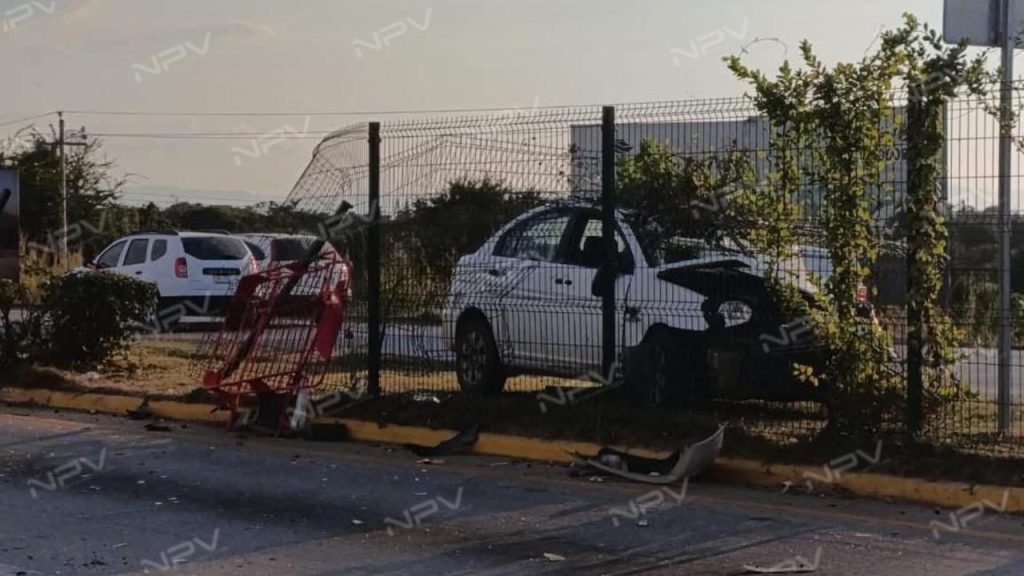 Un aparatoso accidente se registró la tarde de este día sobre el bulevar Riviera Nayarit, a la altura del Centro Comercial Lago Real, donde un vehículo compacto color blanco y un taxi protagonizaron un choque que dejó cuantiosos daños materiales y movilizó a los cuerpos de emergencia.