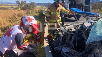 En el vehículo Nissan, viajaban tres personas originarias de Casimiro Castillo, Jalisco, tratándose de una femenina de 38 años de edad misma que a la revisión médica no presentaba lesiones visibles, solo refería dolor en el tórax, asimismo, la segunda persona que se atendió fue una persona del sexo masculino de 75 años, misma que requirió extracción del vehículo en camilla, ya que no se podía mover y también se atendió a una tercera persona masculina de 60 años, el cual se encontraba recostado fuera de la cinta asfáltica, a la revisión pre hospitalaria se detectó que contaba con probable fractura en la zona cervical.
