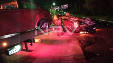 Aparatoso choque volcadura se registró la madrugada de este lunes sobre el Boulevard Rivera Nayarit, a la altura del puente peatonal de La Mega, en el poblado de Bucerías municipio de Bahía de Banderas, lo que generó la movilización de las autoridades municipales encargadas de vialidad, así como de los paramédicos del cuerpo de Bomberos y Protección Civil.