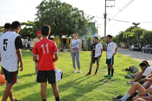 El señor Sergio Ortiz, entrenador del Atlético Bahía, agradeció la disposición y pronta respuesta para apoyar a quienes se acercan con solicitudes de cualquier índole “y en este caso impulsar a los niños y jóvenes en el Municipio”; por lo que manifestó su alegría por la visita de la Primera Dama del Municipio y señaló que portarán los uniformes con orgullo en cada uno de los torneos, buscando poner en alto al municipio de Bahía de Banderas.