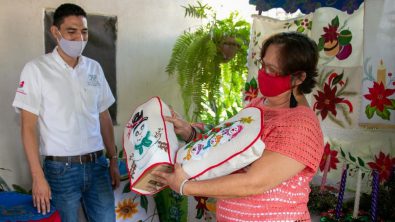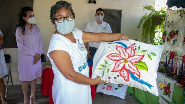 En esta ocasión, el subdirector de programas del Sistema DIF, César Venegas Arceo, y la coordinadora de AMSIF Adriana Gómez Funes, acudieron con las integrantes de este grupo, quienes compartieron su testimonio y diseños elaborados por ellas, como fundas para electrodomésticos, caminos de mesa, centros de mesa, servilletas en manta, entre otros artículos.