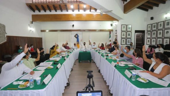 En este marco, el pleno aprobó también los protocolos para la celebración de las sesiones solemnes a realizarse la primera de ellas el próximo 10 de septiembre en salón de cabildo, para el Informe de Actividades del alcalde interino; en tanto que la segunda, tendrá lugar el 30 de septiembre para la toma de protesta de la nueva administración municipal, con lo que se declaró como recinto oficial el patio central de la presidencia. Ambos actos se realizarán cumpliendo con los protocolos de salud emitidos para este tipo de actividades por la Mesa de Salud Estatal.