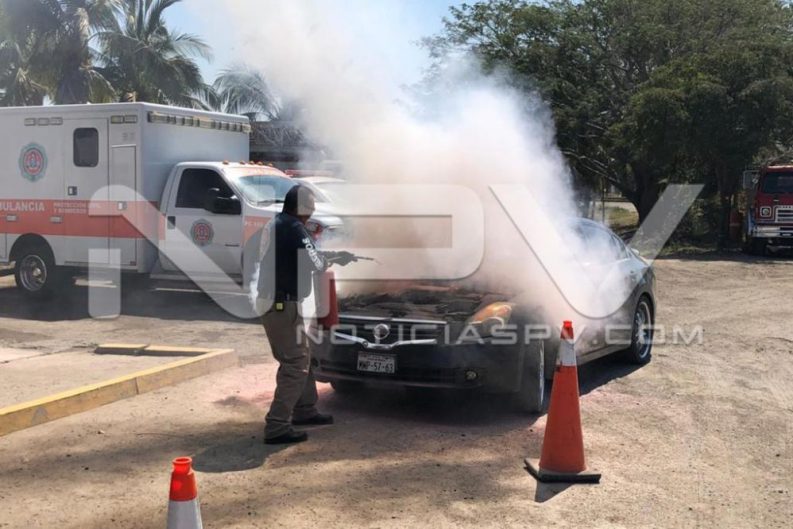 Un vehículo Sentra, ardió en llamas al ir circulando sobre el Boulevard Riviera Nayarit, pero afortunadamente el conductor pudo llegar a la base de Protección Civil de Bahía de Banderas, donde los Bomberos lo auxiliaron y apagaron el fuego antes de que se extendiera aún más, sin que se reportaran víctimas que lamentar.