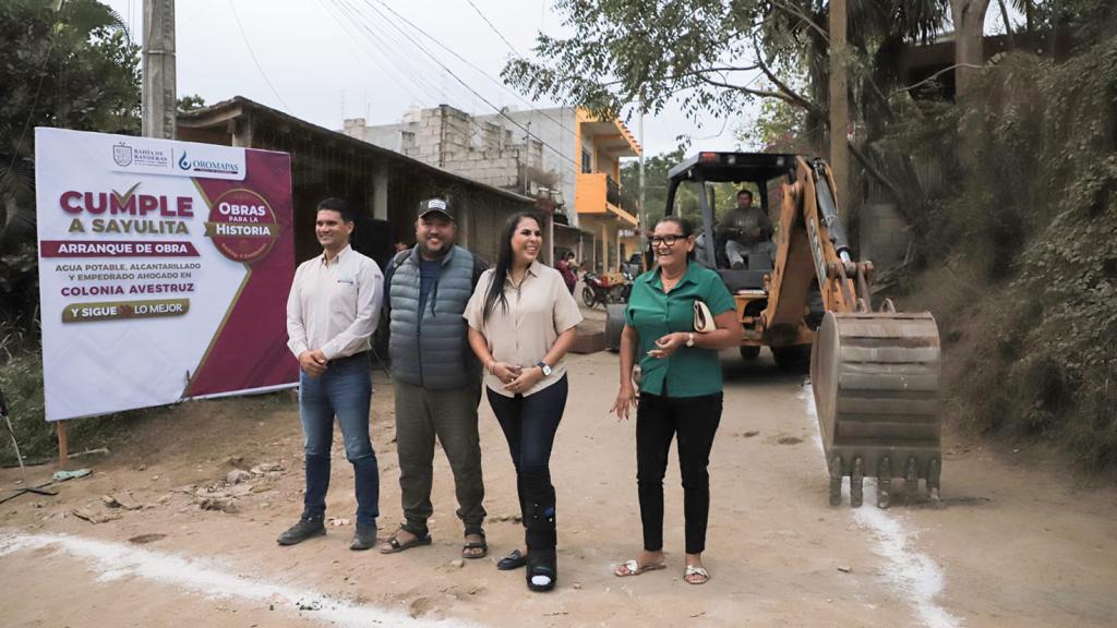 Bahía de Banderas, Nay., 12 de enero de 2024.- La tarde de este miércoles se llevó a cabo el arranque de obra de la colonia Avestruz, en la localidad de Sayulita, en donde se contempla la instalación de alcantarillado sanitario, tubería para el suministro de agua potable y posteriormente su empedrado.