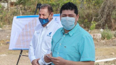 El director general de SEAPAL Vallarta, Santiago Centeno Ulín en compañía del alcalde Interino de esta ciudad, Jorge Quintero Alvarado, dieron el banderazo de arranque a la obra que llevará el servicio de agua potable a la colonia Vista Bahía.
