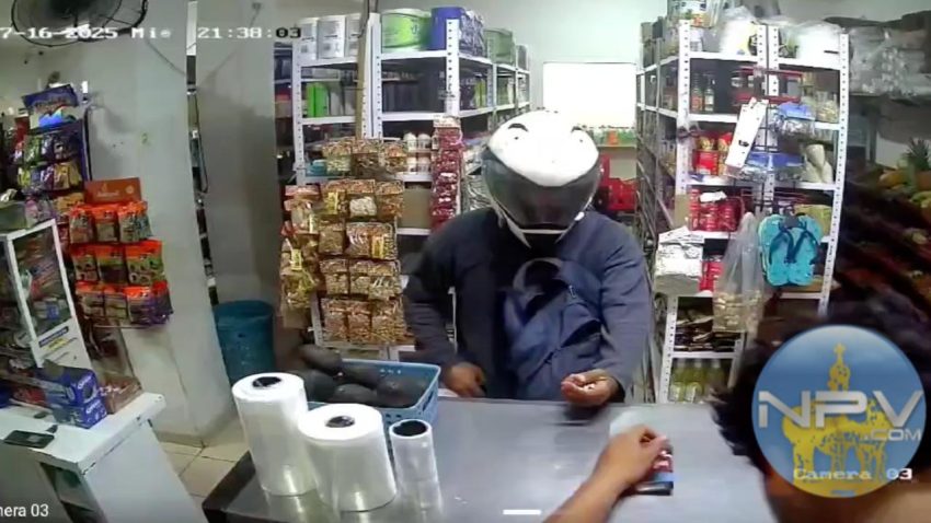 El incidente ocurrió entre las calles Hidalgo y Benito Juárez y quedó registrado en un video de seguridad. En las imágenes se observa cómo el agresor, vistiendo una camiseta con la palabra “CAT”, ingresa al negocio y sostiene una breve conversación con el empleado. Durante ese momento, abre su mochila y deja ver el arma, lo cual fue suficiente para que el joven, visiblemente nervioso, accediera a entregar el dinero en efectivo.