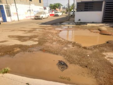 El pasado fin de semana vecinos de la calle Valle Los Reyes de la delegación Valle Dorado, Bahía de Banderas, Nayarit, reportaron una fuga de agua potable. El OROMAPAS reparó este martes el daño, pero no reconstruyó la banqueta