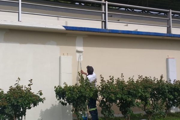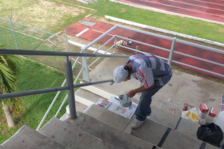 Por su parte, una cuadrilla de pintores trabajaron en el embellecimiento y protección de la herrería de la zona de gradas y en la fachada principal de acceso a la Unidad Deportiva de San José del Valle; en los baños de este inmueble también se aplicó pintura y mantenimiento y se rehabilitaron dos pasos peatonales que conducen hacia la pista de tartán.