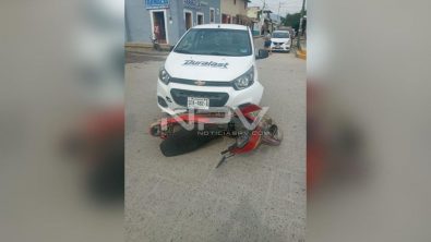 Un masculino de 57 años y un menor de edad fueron arrollados por un auto al viajar en una motocicleta, quienes quedaron tirados en plena calle donde fueron auxiliados por elementos de los servicios de emergencias y donde tomaron nota del percance, los agentes de Tránsito del Municipio.