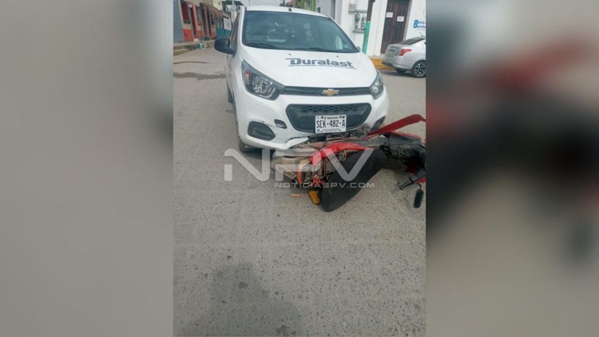 Hasta ese sitio arribaron los agentes de Tránsito Municipal, quienes informan que ahí tienen a la vista un vehículo de la marca Chevrolet, de color blanco, con placas de circulación SEK-482-A del estado de Nuevo León, donde se encuentra también el conductor de nombre Miguel Ángel Salgado, vecino de Valle de Banderas y en la parte delantera se encuentra una Motocicleta de color rojo, sin placas, que era conducida por un masculino de 57 años y a bordo iba un niño de 8 años.