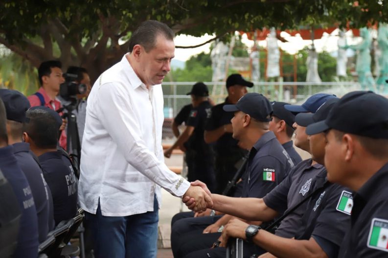 “Nos propusimos remontar el desastre con el que recibimos a nuestra policía municipal y tránsito, con solamente 5 patrullas para todo el municipio y solo 204 elementos, de los cuales únicamente 173 cumplían los requisitos de ley”, recordó el doctor Jaime Cuevas Tello, Presidente Municipal de Bahía de Banderas.