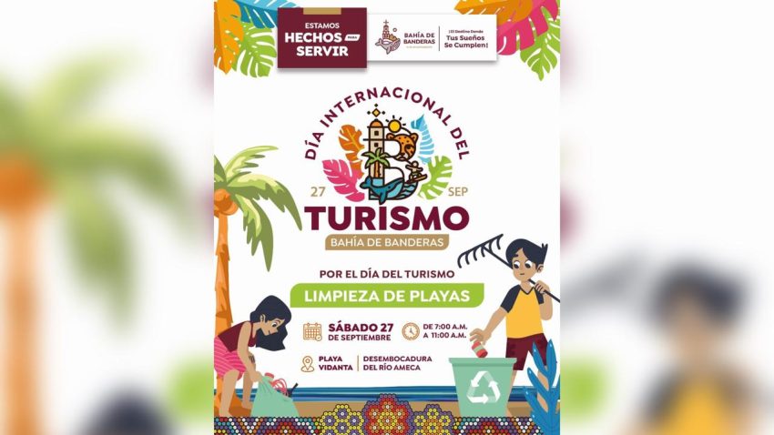 Este próximo sábado 27 de septiembre, el H. XII Ayuntamiento de Bahía de Banderas, encabezado por el presidente municipal Héctor Santana, llevará a cabo una Limpieza de Playas en la desembocadura del río Ameca (Ingreso por Playa Villa Varadero), en un horario de 7:00 a 11:00 de la mañana, en el marco del Día Internacional del Turismo.