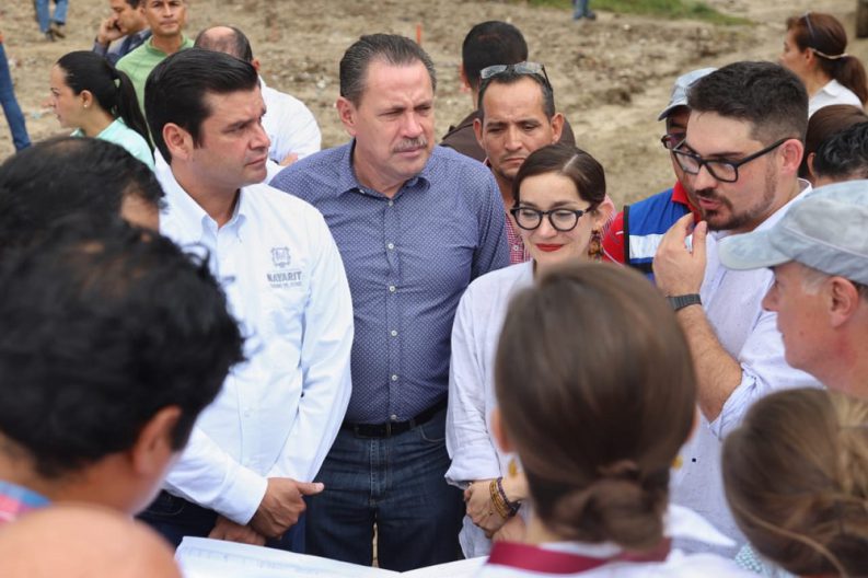 La visita en Bucerías se realizó en lo que será el nuevo Centro de Atención y Desarrollo Infantil, el nuevo Malecón del Arroyo del Indio, que va desde las inmediaciones del puente peatonal de la colonia Javier Ovando hasta la playa de Bucerías y una visita a lo que será el Parque de Barrio en la colonia La Unidad.