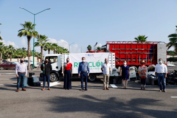 Así lo expresó el presidente municipal de Bahía de Banderas, doctor Jaime Cuevas Tello, quien acompañado de la presidenta del DIF, LTS Ana Esperanza Berumen de Cuevas, asistió a la jornada de acopio del Reciclón 2020, la cual tuvo como sede el estacionamiento del Centro Empresarial Paradise en Nuevo Vallarta, donde se recibieron 8 toneladas de desechos electrónicos de empresas hoteleras, comercios y ciudadanos en general.