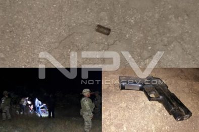 Los elementos de la Policía y del Ejército al acercarse al sitio indicado informaron que encontraron efectivamente una motocicleta de la marca Italika, de color rojo con blanco, manchas hemáticas, además de casquillos percutidos de los calibres 9 mm y .223, junto con una pistola escuadra 9 milímetros.