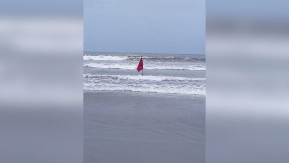 A partir de la tarde de este sábado las diferentes playas del municipio tendrán bandera ROJA, queda totalmente prohibido el baño en la zona, ya que pueden presentarse pozos y canales de succión producidos por la rotura de los bancos de arena.