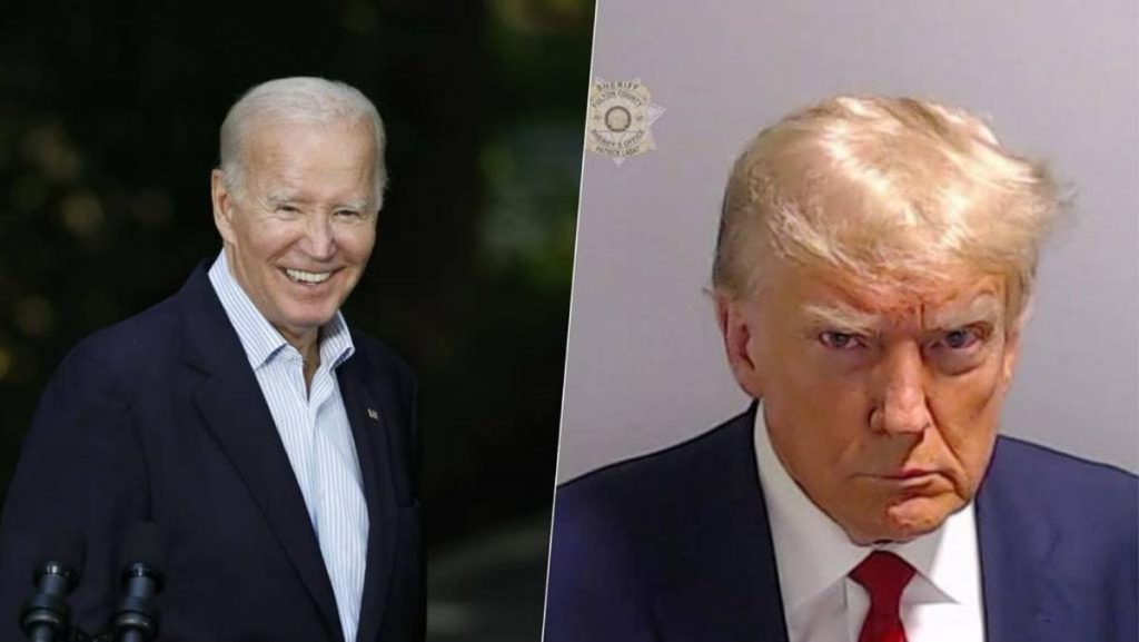 Mientras Trump estaba siendo fichado en la cárcel del condado de Fulton el jueves por la noche, Biden envió un correo electrónico de recaudación de fondos a sus partidarios diciendo que “a propósito de nada” creía que “hoy es un gran día para dar a mi campaña”.
