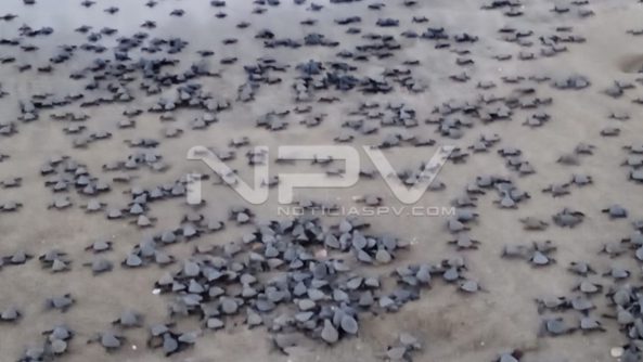 Cientos de tortuguitas nacieron en las playas de Nuevo Vallarta durante la madrugada, donde el personal de seguridad de conocido hotel se dedicó a cuidarlas y ayudarlas para que pudieran llegar al mar antes de que fueran devoradas por las aves y mapaches que abundan en esa zona y están a la espera de que nazcan las tortugas para hacerles daño.