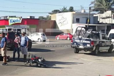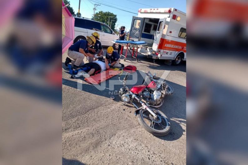 El joven lesionado, quien iba a bordo de una motocicleta Suzuki, de color rojo, fue impactado por una camioneta Ford, tipo Ranger, de color rojo, modelo 2001, que conducía, Salvador González, de 53 años, vecino de San Vicente, con domicilio en calle 16 de Septiembre, presentando el motociclista varias lesiones, siendo una contusión en el cráneo, en hueso temporal, así como dolor en miembros pélvicos, con posible fractura de tibia y peroné derecha, según informaron los Paramédicos, a la autoridad ahí presentes, los cuales lo trasladaron al nosocomio antes mencionado para su valoración médica.