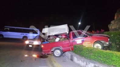 Los agentes viales dan a conocer que se trata de una camioneta Pick Up de color rojo, en la que venden frutas y que iba cargada de hieleras, entre otras cosas, la cual está abandonada y efectivamente chocada contra la glorieta, por lo que fue asegurada y remitida al corralón
