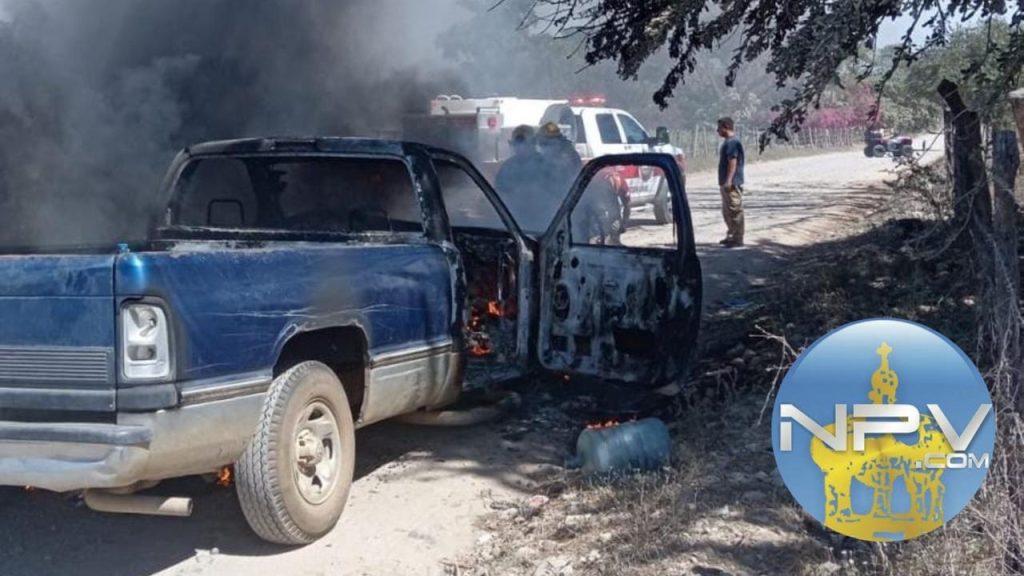 La tarde de este jueves, una camioneta particular fue consumida por el fuego mientras circulaba por la brecha que conecta el panteón de San Juan de Abajo con la carretera rumbo a El Colomo, en el municipio de Bahía de Banderas.