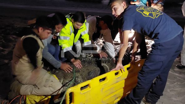 Comunicado.- La Secretaría de Seguridad y Protección Ciudadana a través de la Base de Nuevo Nayarit de Protección Ciudadana y Bomberos, dio a conocer que capturaron un cocodrilo para su reubicación, esto en playa de Nuevo Nayarit de Bahía de Banderas.