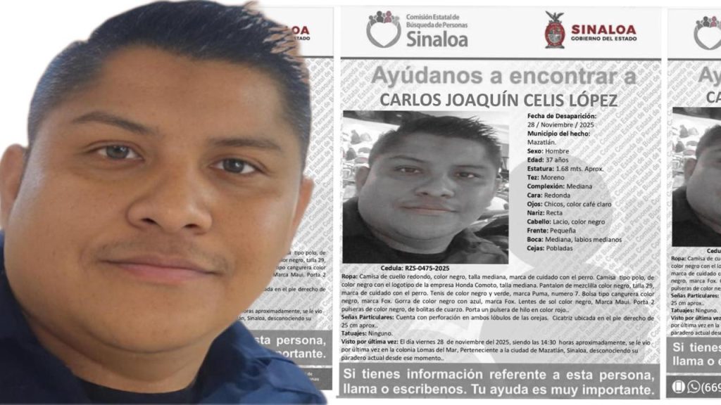 Familiares y personas cercanas a Carlos Joaquín Celis López solicitaron apoyo para localizarlo, luego de que se reportara su desaparición en Mazatlán, Sinaloa, tras haber viajado desde Puerto Vallarta por motivos de trabajo. De acuerdo con la información difundida por sus familiares, el hombre, de 37 años de edad, se trasladó a Mazatlán para cumplir una comisión relacionada con la recepción de motocicletas, actividad vinculada a su empleo en una agencia Honda con sede en Puerto Vallarta. El último contacto con Carlos Joaquín se tuvo el 28 de noviembre de 2025, alrededor de las 14:30 horas, cuando se encontraba en la colonia Lomas del Mar. Desde entonces no se ha tenido noticia sobre su ubicación. Ante la falta de información, la familia expresó su preocupación por la posibilidad de que haya sido privado de la libertad al concluir la diligencia laboral, aunque hasta el momento no se ha confirmado ninguna línea oficial sobre lo ocurrido. Como señas particulares, Carlos Joaquín Celis López mide 1.68 metros, es de tez morena y complexión mediana. Presenta una cicatriz visible en el pie derecho, de aproximadamente 25 centímetros, y cuenta con perforaciones en ambos lóbulos de las orejas. Al momento de su desaparición vestía una camisa tipo polo negra con distintivos de la empresa donde labora. Cualquier información que permita ubicarlo puede ser comunicada al número (669) 327 8424, habilitado por sus familiares para recibir datos que ayuden a su localización.Familiares alertan sobre la desaparición del empleado tras acudir a Mazatlán por un encargo de la empresa; piden apoyo ciudadano.