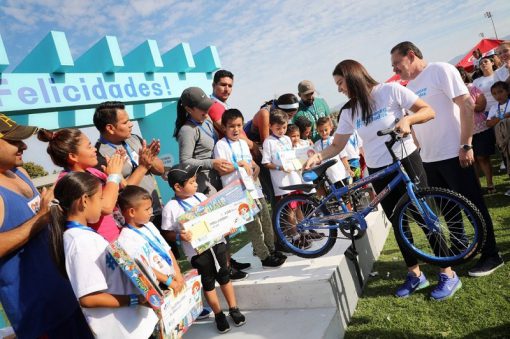 Y es que además de la adrenalina de la carrera, la celebración a los niños bahiabanderenses se convirtió en una gran fiesta familiar, ya que posterior a la ceremonia de premiación donde los ganadores recibieron medallas de participación, juguetes y premios en efectivo; todos los asistentes disfrutaron un delicioso desayuno y participaron en una rifa donde se entregaron: entradas al cine, viajes en cruceros, balones, juguetes y bicicletas; además se contó con la presencia de personajes de super héroes que convivieron con los menores, aunque los héroes reales, fueron los niños y sus papás que en una muestra de amor mutuo participaron y cruzaron juntos la línea de meta. #EsperanzaParaTodos
