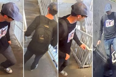 En las imágenes se observa al sospechoso vestido de negro, descendiendo del techo…