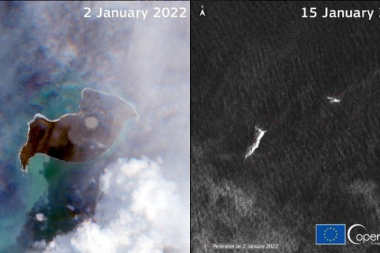 Tras violenta erupción, desaparece la isla del volcán de Tonga