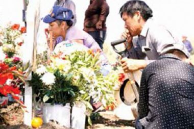 En el alfalfar de San Primitivo, los deudos de las víctimas de la explosión…