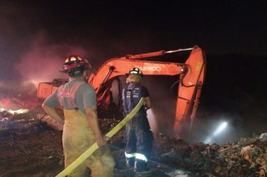 Personal de DPCyB contralan incendio en el vertedero “El Breño”