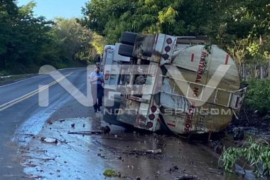 Se trata de un trailer cargado con Melaza, el cual está “acostado”, a la altura…