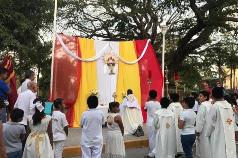 Este jueves 20 de junio 2019, feligreses de la iglesia de la Santa Cruz de la comunidad de La Cruz de Huanacaxtle, Bahía de Banderas, Nayarit, estuvieron de fiesta, celebraron la presencia de Cristo en la Eucaristía lo que se conoce como Corpus Christi. Luego de la Eucaristía de las 7 de la noche, el sacerdote portó en sus manos el Santísimo y en procesión, acompañado por los feligreses recorrieron las calles principales de esta comunidad.