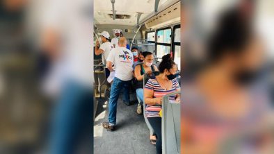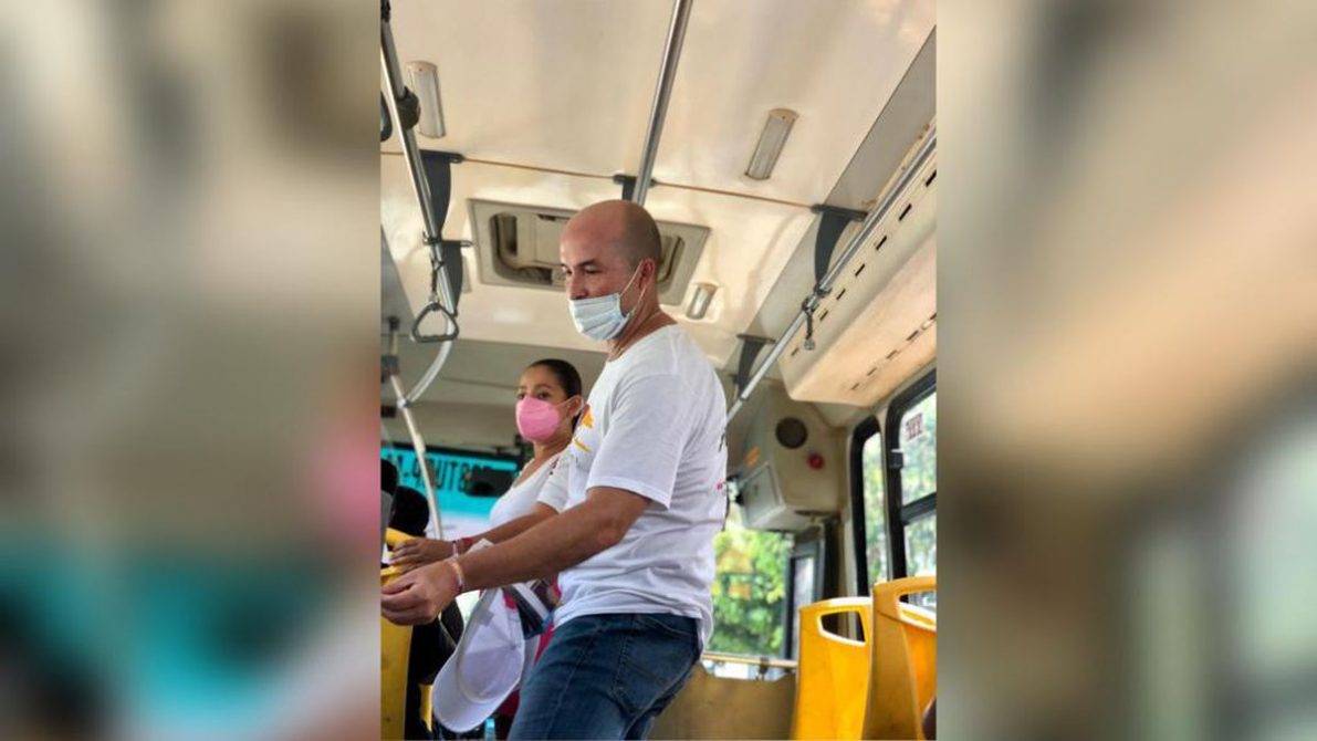 El candidato a diputado federal abordó camiones del transporte público donde saludó a cientos de usuarios, y les recordó que lo más importante es promover e impulsar el turismo