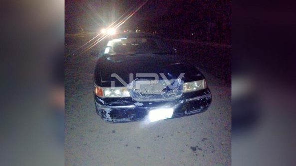 Se trata de un Grand Marquis, marca Ford, de color azul, modelo 2000, con placas de circulación RHA-57-41 de Nayarit, conducido por Isaías Romero Hernández, con domicilio en Huastitan, número 1 en San Juan de Abajo, quien dijo que circulaba por la carretera con dirección de Poniente a Oriente y al llegar a la altura de los arcos de ingreso al poblado, no se percata que sobre la carretera había un semoviente con el que se impactó muriendo en animal en el lugar.