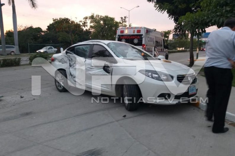 Al sitio indicaron se dirigieron inmediatamente los agentes de Tránsito Municipal, en la unidad radiopatrulla PV-149 a cargo de Evaristo Correa, quienes al arribar informan a su base operativa que se trata efectivamente de un choque entre dos vehículos, un auto Fluencer, de color crema, con placas GUF-96-12, del estado de Guanajuato, que resultón con daños considerables luego de ser impactado sobre su costado derecho, por un camión de pasajeros, tipo autobús de la línea Compostela, con el número 614 y placas 914-069-P, de Nayarit y 33-HA-9P, del Servicio Público Federal.